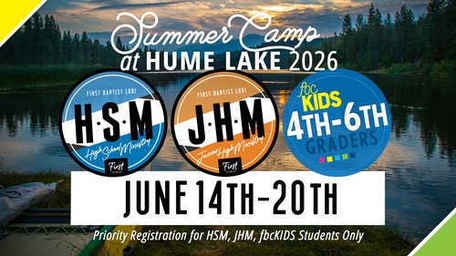 Summer Camp Registration opens Sunday Morning at 8am. Please make sure you prepare accordingly and take a look at the requirements for HSM, JHM, and fbcKIDS Sumer Camp Sign-ups. Click the link below.