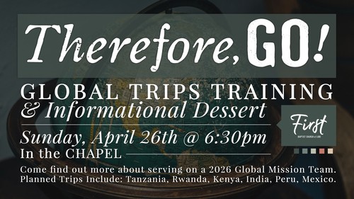 Interested in going on a short term mission trip this year? Join us for an informational dessert this Sunday @ 6:30pm in the Chapel. More information on the missions trips can be found be clicking the link below. We hope see you Sunday.